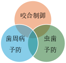 歯周病、虫歯予防だけではなく、咬む力のコントロール「咬合制御」をしていくことが予防歯科の柱と考えています。